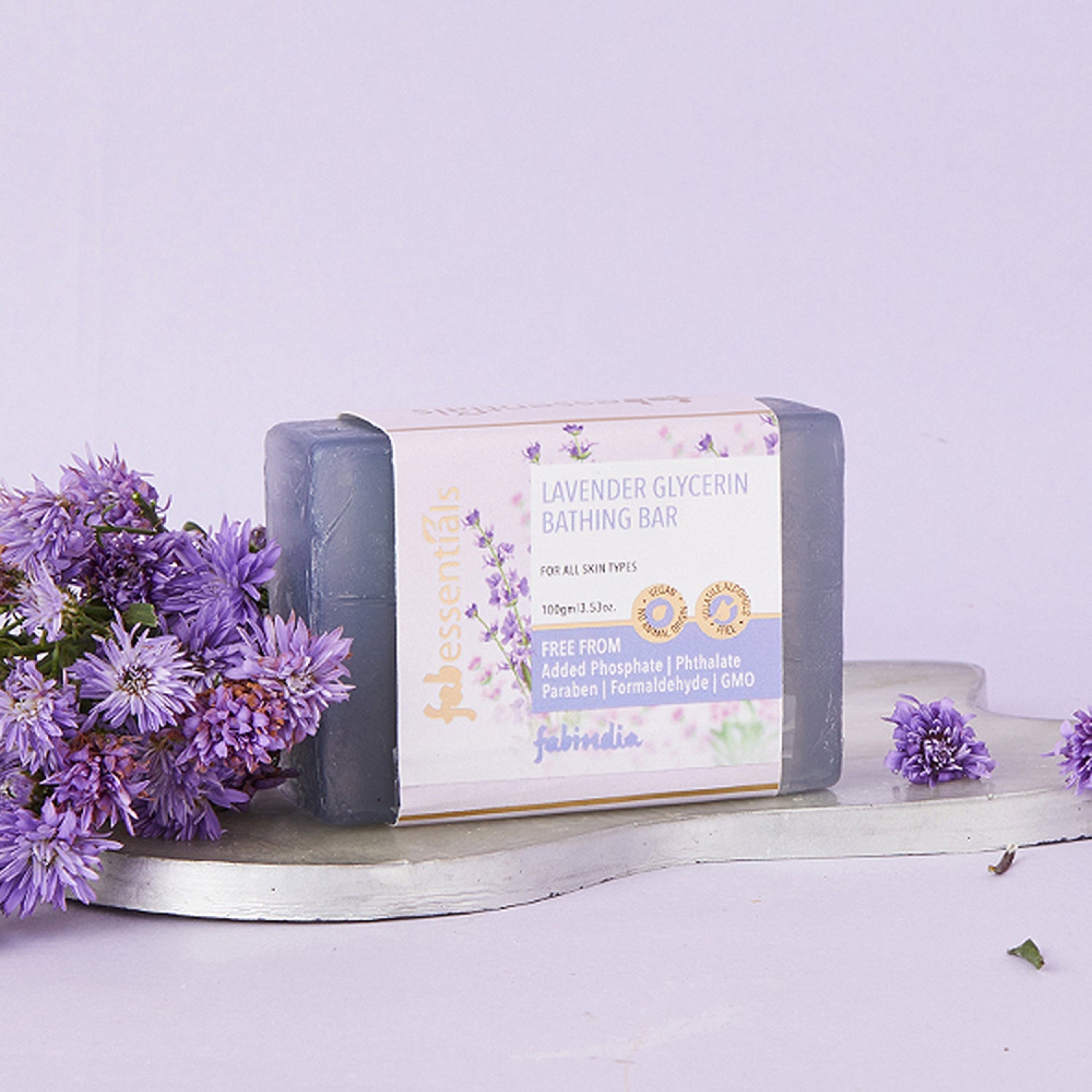 Fabessentials Lavender Glycerin Bathing Bar is infused with Lavender and Glycerin. Free from toxins, this soap gently cleanses away dirt and grime from your body while retaining skin's natural moisture balance. Lavender is known for evening out skin tone and adding a natural glow to skin, while Glycerin hydrates and moisturizes skin, and banishes dryness and roughness.