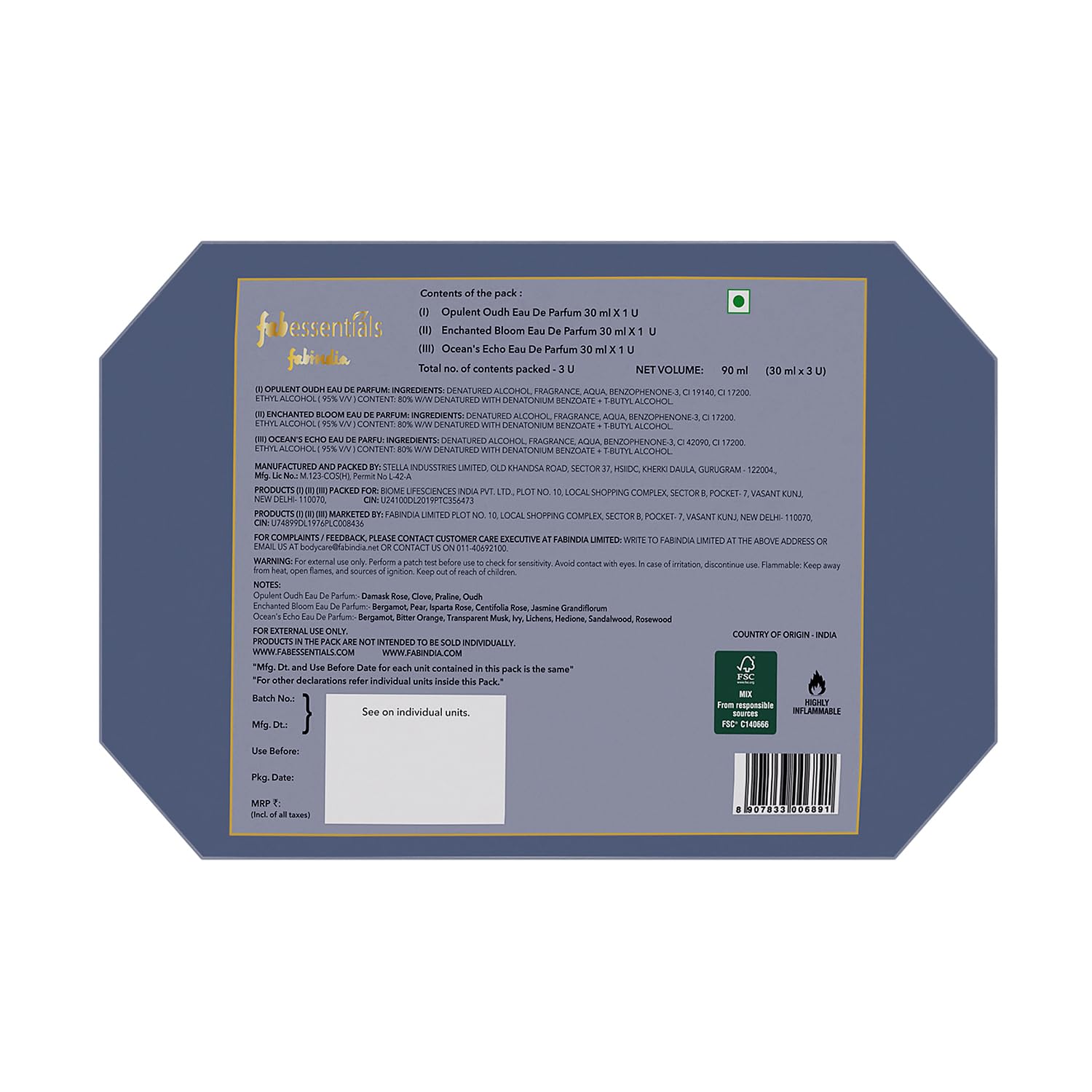 ✅ 𝐋𝐮𝐱𝐮𝐫𝐲 𝐏𝐞𝐫𝐟𝐮𝐦𝐞 𝐆𝐢𝐟𝐭 𝐒𝐞𝐭 – Fabessentials Eau De Parfum Set includes three long-lasting perfumes: Ocean’s Echo, Enchanted Bloom, and Opulent Oudh, crafted for both men and women who love premium fragrances.