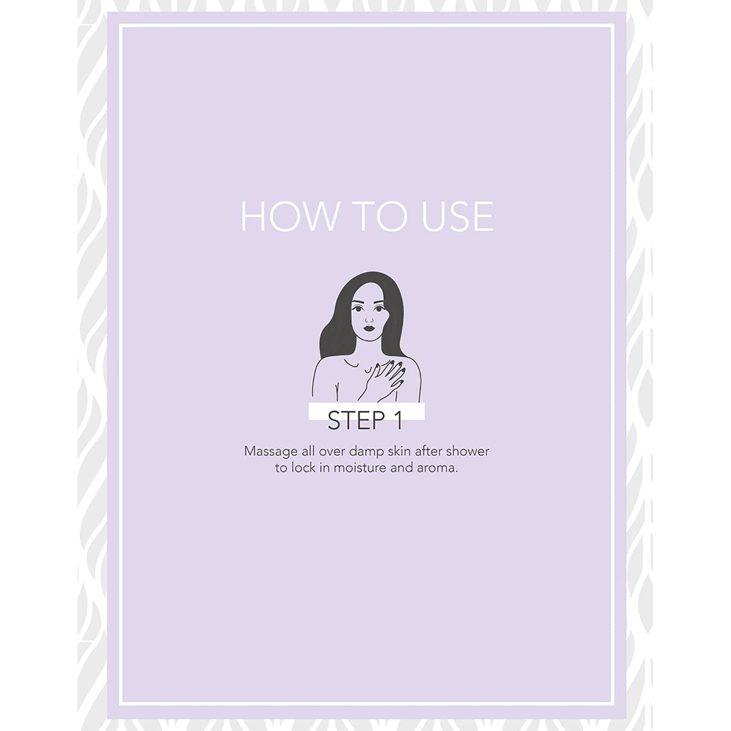 Massage all over the damp skin right after the shower to lock in precious moisture and envelop you with a distinctive aroma.