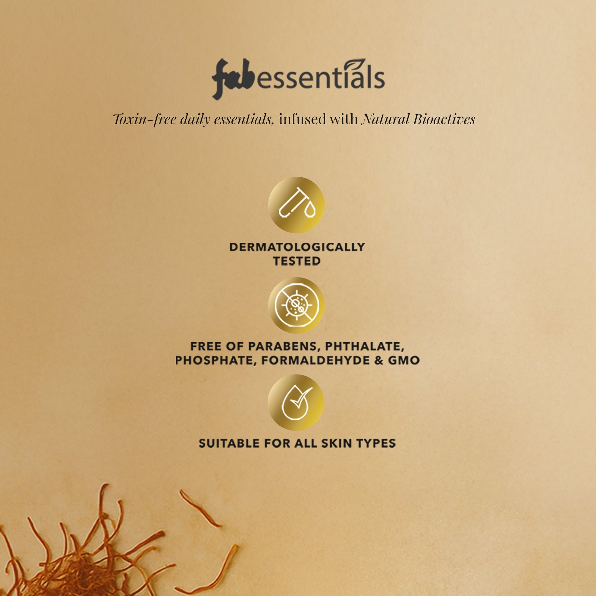Experience the luxurious glow of fabessentials Suvarna Kumkumadi 24K Gold Illuminating Day Cream a rich, high-performance face cream infused with pure 24K gold, Kumkumadi Tailam, saffron & sandalwood. This brightening cream helps reduce fine lines, fade pigmentation, and restore a natural radiance to dull skin. Fortified with red algae, niacinamide, licorice & peony, it refines texture and promotes a more even skin tone. Advanced hydrators like aquaporin, Pentavitin & hyaluronic acid deeply moisturize, plump & strengthen the skin barrier. Its lightweight, non-greasy formula absorbs quickly, leaving skin soft, smooth & luminous. Suitable for oily, dry & acne-prone skin, this face moisturizer is dermatologically tested & free from parabens, phthalates, formaldehyde & GMOs. Ideal for both men & women seeking youthful, hydrated, radiant skin. Use daily as your brightening, anti-aging or gold face cream for visible glow & revitalization.